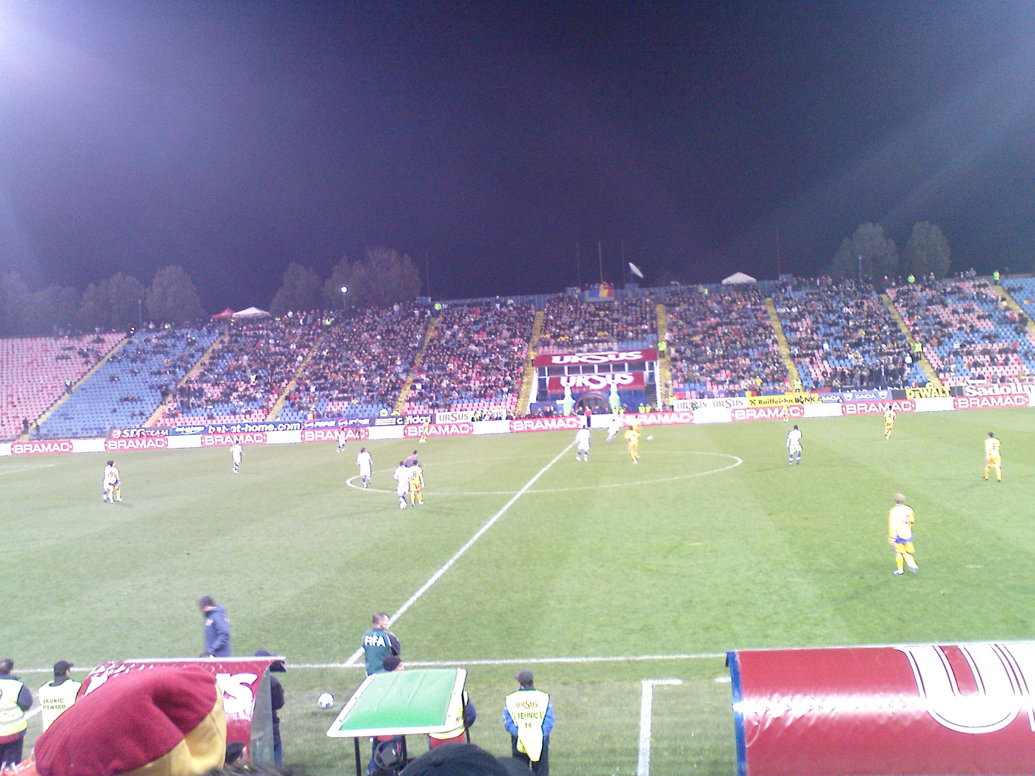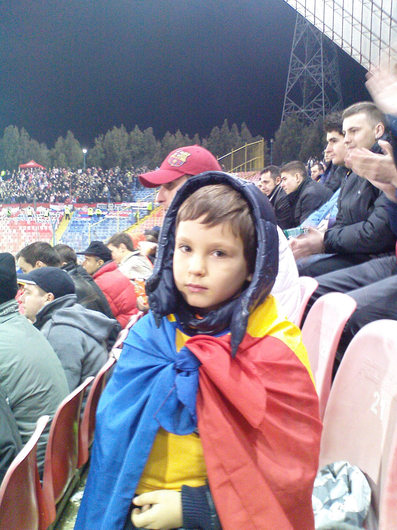 Destul de plictisitor meciul aseară, mai ales că mă aşteptam la un meci mai bun din partea croaţilor. Nu s-a jucat mare lucru. Lume puţină. Majoritatea oamenilor veniseră cu doamnele la meci. Ceea ce a făcut totul şi mai boring. Ce-i drept, nici nu aveai pe cine să înjuri. Mai sus sunt câteva poze. Puştiul e foarte simpatic, după cum se observă. La primul gol primit de România a exclamat foarte dezamăgit ‘Hai mă, pisică mă!’. Cel mai draguţ rapidist pe care îl ştiu :))