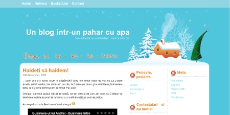 Deşi mai sunt câteva minute până pe 1 decembrie, am băgat deja tema de Crăciun. Care a devenit un fel de tradiţie ;)) Anul trecut am avut-o pe asta albastră de mai sus, iar acum 2 ani am avut alta dar nu mai stiu exact care. Am câteva zeci de teme de Crăciun instalate pe blog 😀 So… e cam greu s-o identific :))