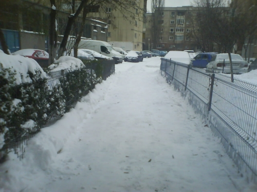 După viscolul nebun care a precedat Crăciunul, m-am îmbrăcat, am căutat lopata de zăpadă prin casă şi am coborât la prestat munci fizice. Pentru că suntem printre cei mai vechi locatari din blog, avem şi cele mai mare pretenţii, pe principiul primului venit. Ştim tot ce s-a întâmplat în blocul ăsta, când a fost oprită apa caldă şi de ce, când ploua prin acoperiş, când era inundat subsolul etc. Fiind o familie cu tradiţie în bloc considerăm că avem prioritate la micile bucurii ale vieţii de locatar: loc de parcare preferenţial, putere de decizie în alegerea reprezentanţilor în comitet, timp de răspuns mai bun la înlocuirea becurilor.