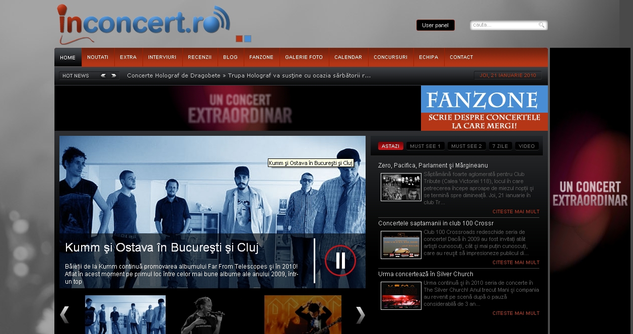 Unul din obiectivele pe care le-am stabilit pentru ÎnConcert.ro la debutul lui 2010 a fost să începem să monetizăm. Azi am dat drumul la prima campanie de bannere (dacă îmi zicea cineva că primii bani scoşi vor fi din display advertising îl luam la mişto).