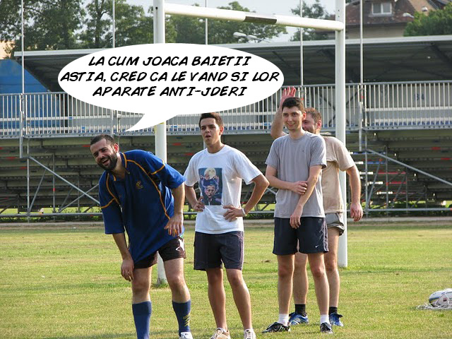 Azi am fost la antrenamentul (parţial deschis şi cât se poate de oficial) al echipei bloggerilor. Aia de rugby, că aia de fotbal a ajuns la un asemenea nivel, că nici nu se mai antrenează.