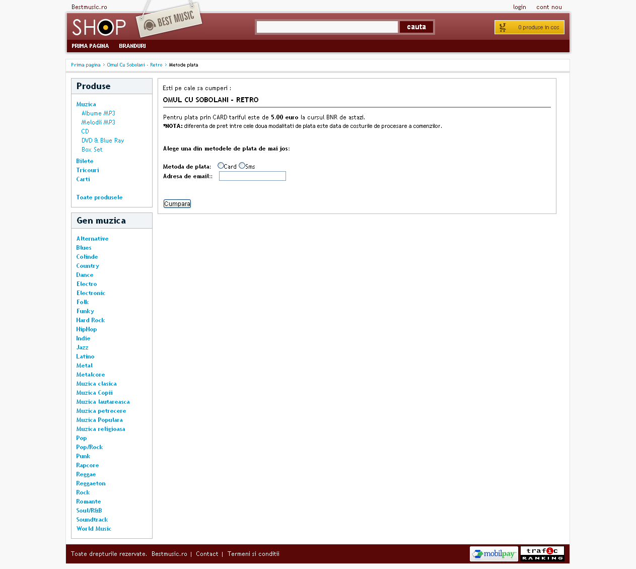Când am mai lansat albume româneşti prin MobilPay ştiu că am făcut asta fără să cer oamenilor vreun cont. „Nu-i nimic, facem şi cont” mi-am zis. Am făcut cont cu aceeaşi adresă de mail pe care o completasem iniţial şi am aşteptat să se întâmple ceva. În cont nu aveam nicio opţiune de download. M-am întors la MobilPay, unde după completarea datelor am fost anunţat că plata respectivă s-a făcut şi că a fost trimisă către beneficiar (adică site-ul BestMusic). Păi bun, şi albumul meu?
