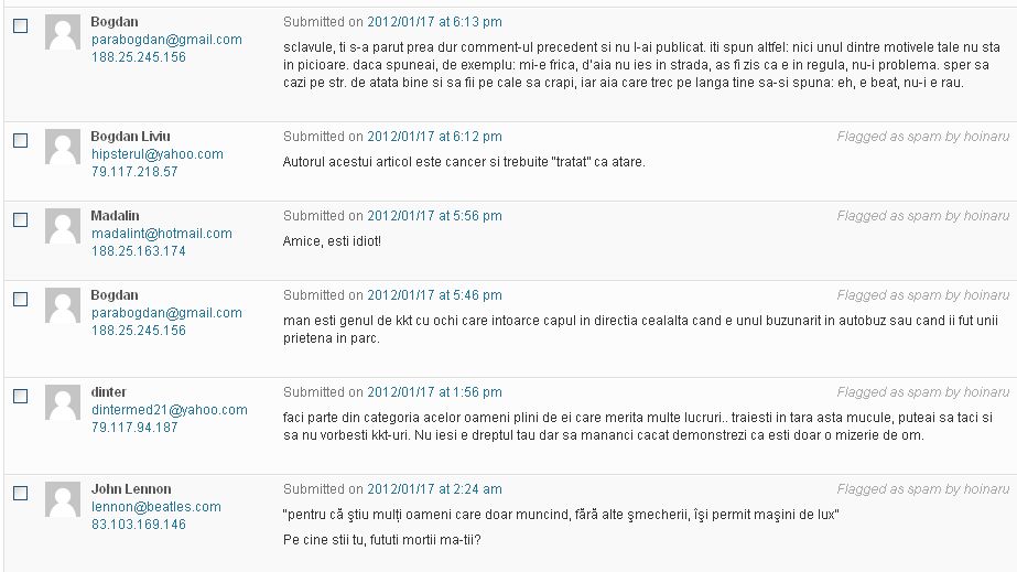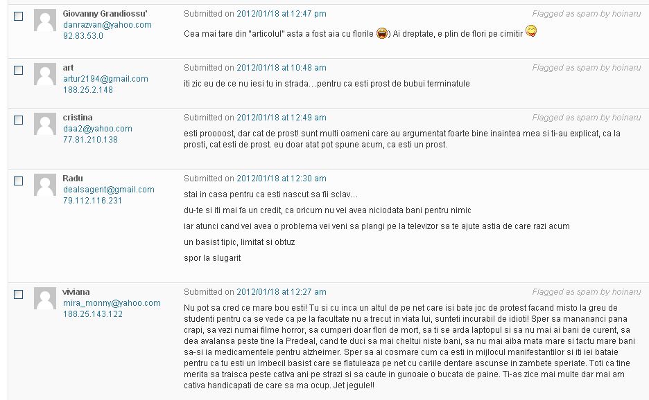 – peste 200 de comentarii (incluzându-le şi pe cele intrate în spam – nu am acceptat niciun fel de injurii)