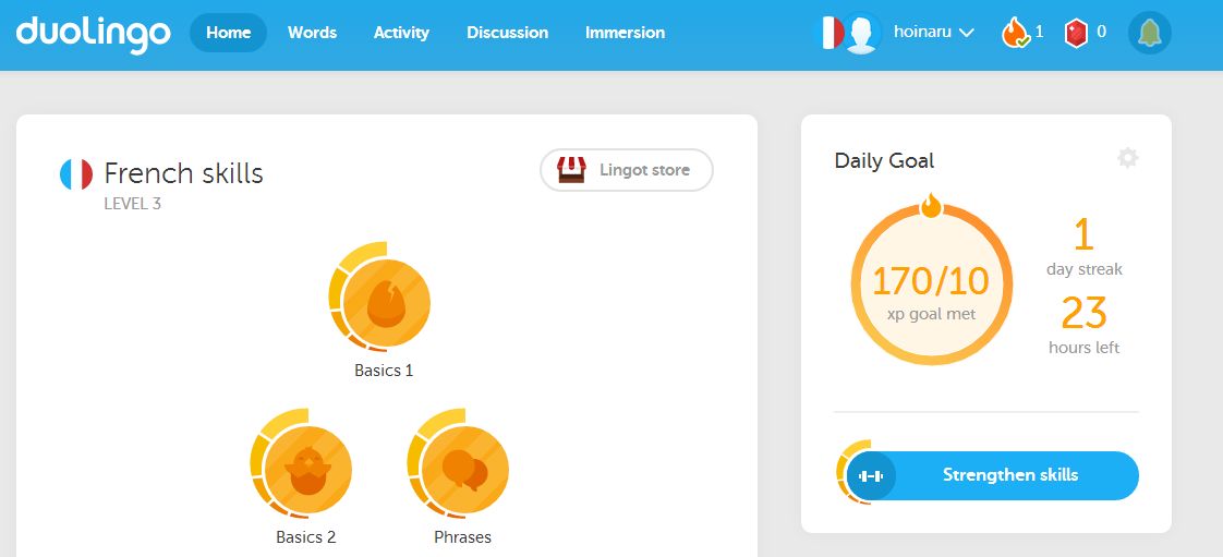 Mi-am instalat si eu aplicatia pe telefon, acum vreo doua saptamani. Am pornit de la ideea ca vreau sa inlocuiesc CandyCrush si Plants vs Zombie cu ceva util. Asa ca m-am hotarat sa recapt cunostintele de franceza si sa incep sa inteleg germana.