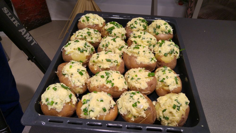 Tot cu ocazia asta am învăţat de ce e bine să cureţi pieliţa de pe muşchiul de porc şi cum se taie uşor nişte cartofi care urmează să fie umpluţi cu ceapă şi cheddar. Avem şi dovada aici, filmată de Mariciu. La tort n-am avut nicio contribuţie, dar l-am mâncat cu recunoştinţă.
