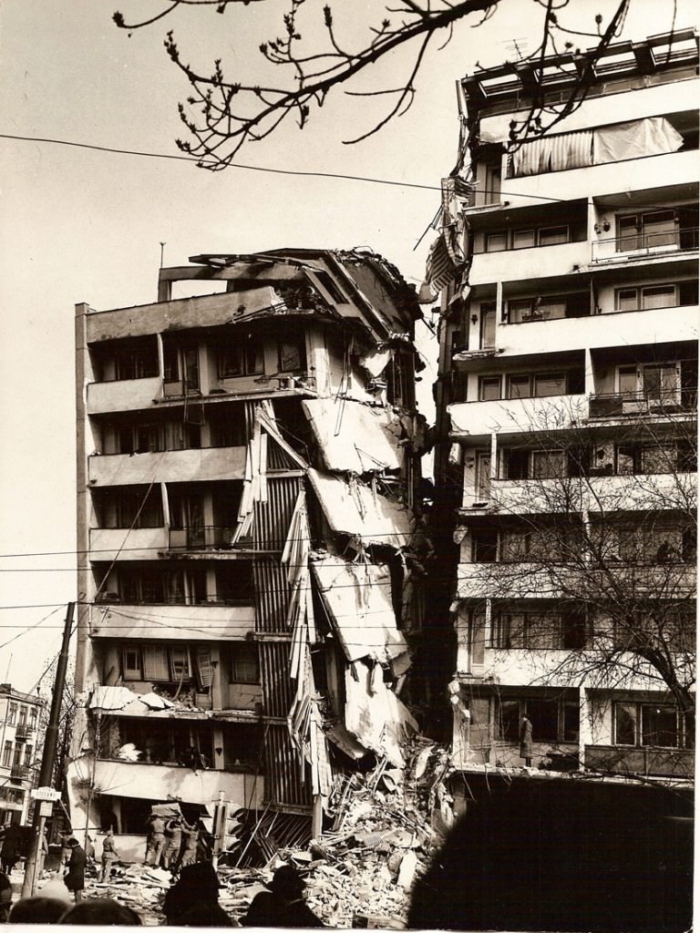 Partea cu consolidarea poate fi exclusă din start, nu am văzut în ultimele 2-3 luni să se facă lucrări acolo. Singura variantă ar fi să se fi modificat încadrarea blocului, care a fost grav afectat la cutremurul din ’77. Atât de grav. (via)