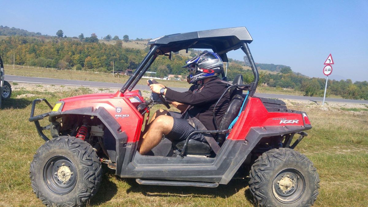 Weekendul ăsta am fost la o petrecere a burlacilor pe lângă Râşnov, aveam nevoie de o ultimă distracţie pentru bietul nostru prieten care e pe cale să facă pasul cel mare. Printre altele, am închiriat nişte ORV-uri precum cel din imaginea de mai sus pentru o tură ghidată prin munţi. Termenul de ORV vine de la off-road vehicle şi e oarecum generalist. Numai că maşinuţele cu care ne-am dat nu erau nici ATV-uri (alea au ghidon în loc de volan), nu erau nici Buggy-uri (fiind mai puternice şi mai solide decât un buggy).