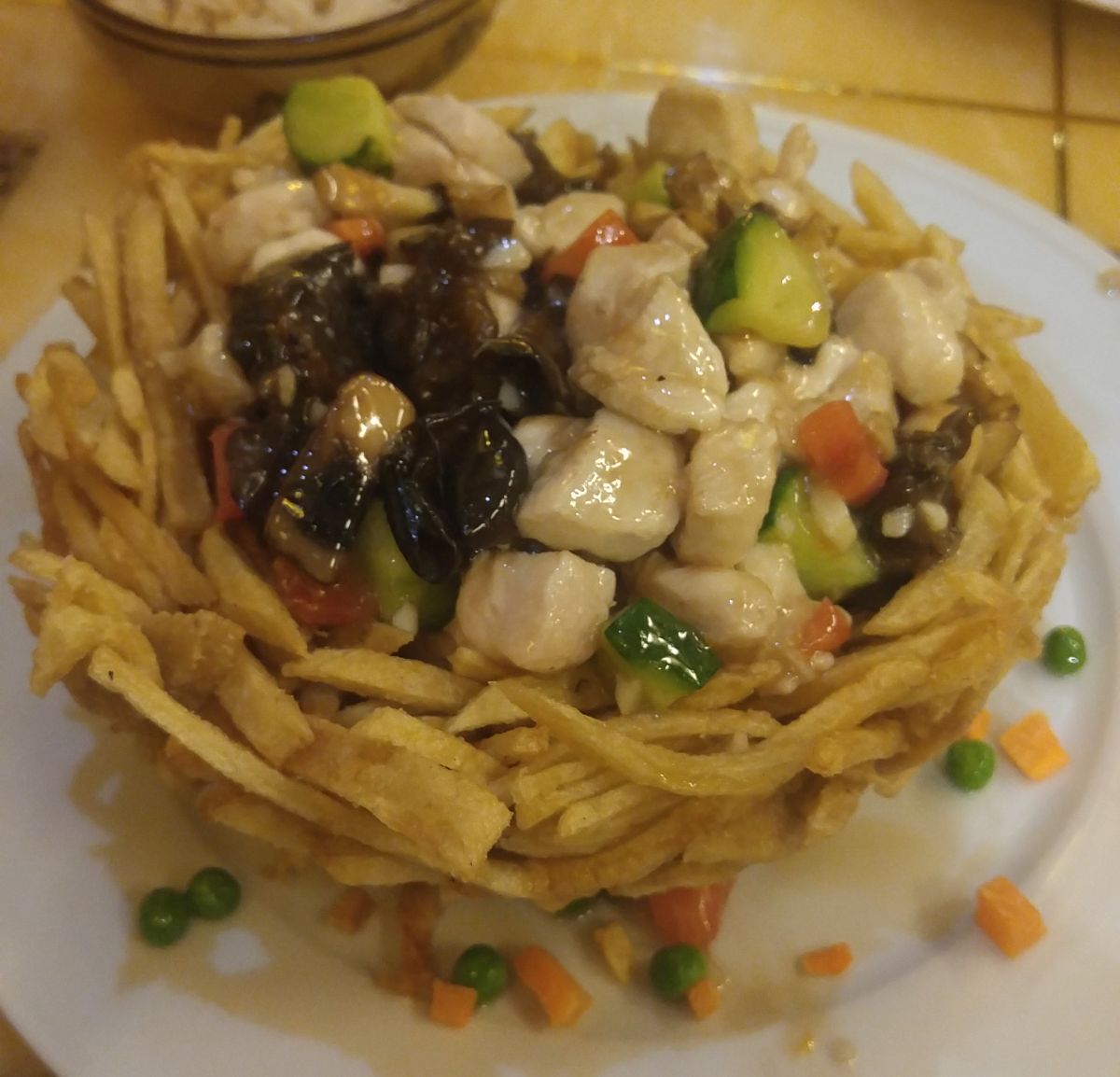 Pui în cuib – de la restaurantul chinezesc pe care îl recomand cu ochii închişi: Peking Duck. Puteţi încerca orice de la ei, cam toată mâncarea e bună. Atenţie doar că porţiile sunt mari, aşa că vă recomand să luaţi câte puţin din toate şi să împărţiţi cu gaşca.