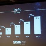 eMAG va lucra anul acesta cu 6 curieri: Fan Courier, DPD, Cargus, Add Cargo, SameDay Courier şi Ecom. Lor li se adaugă 11 showroomuri şi 202 puncte de livrare din Poşta Română. Targetul este să livreze produsele până pe 28 noiembrie. Dacă eMAG reuşeşte să schimbe ceva la Poşta Română va fi cea mai mare realizare de la Regulamentele Organice încoace. Zău, un mamut cu putere mai mare de transport decât toţi privaţii din piaţă reuşeşte să ofere nişte servicii blocate încă în anii ’70. De-aia cred că ar fi scenariu de Oscar să facă cineva profitabilă compania aia.