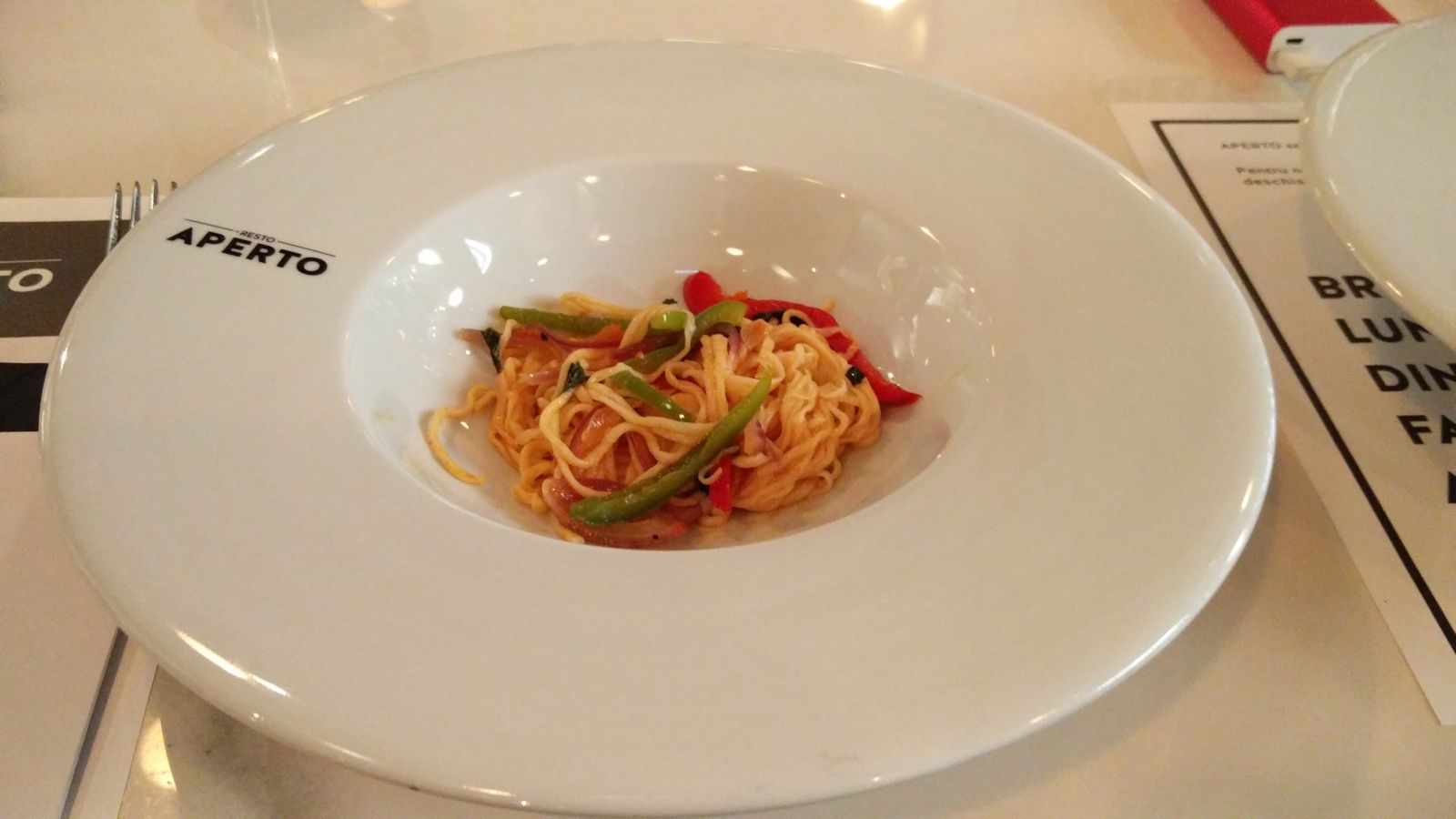 Cât timp se prelucra materia primă, am aruncat un ochi în restaurant şi în meniul de la Aperto. Au multe tipuri de paste, au un burger care arată bine de tot şi nişte preţuri decente pentru un restaurant de calibrul ăsta. Aperto arată foarte bine, premium, însă nu e genul de loc în care să mergi doar la ocazii, ci unul în care poţi să te opreşti săptămânal. Cu siguranţă revin, am câteva chestii de încercat din meniu.