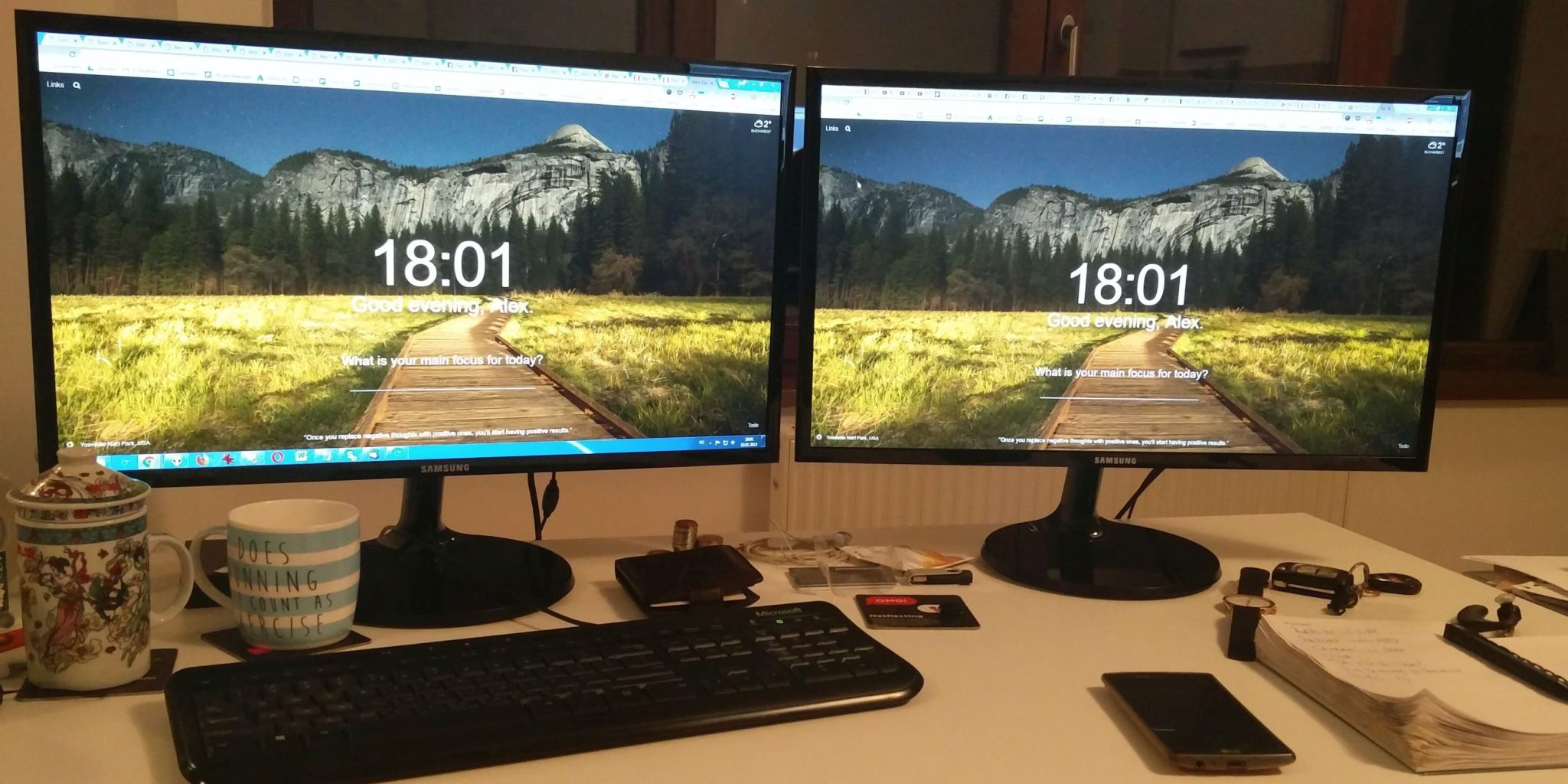 În urmă cu câteva săptămâni am fost în vizită la un client şi am observat că folosea 2 monitoare, chestie care mi-a aprins o dorinţă mai veche. M-am uitat pe net la monitoare, să văd dacă se mai găseşte şi cam cât costă acum modelul de monitor pe care îl am deja. L-am găsit la eMAG cu vreo 630 de lei dar n-am dat comandă pentru că încă eram în dubii. Mi se întâmplă des să îmi doresc chestii şi apoi să analizez îndelung dacă chiar am nevoie de ele sau nu. Aşa a fost cu Vector Watch, cu drona, cu staţia „de tirişti”, mai nou cu Mevo.