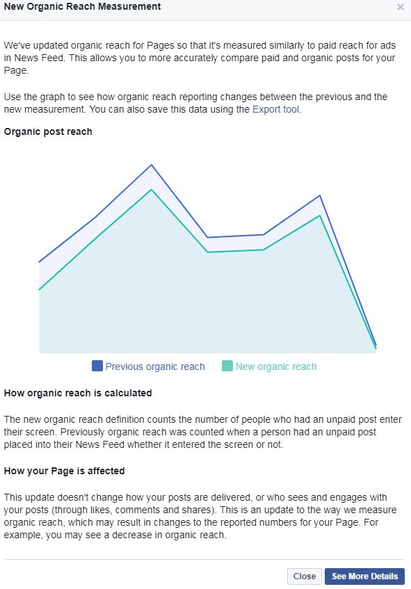 We’ve updated organic reach for Pages so that it’s measured similarly to paid reach for ads in News Feed. This allows you to more accurately compare paid and organic posts for your Page.