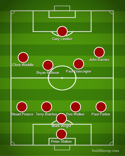 Echipa-tip care a reuşit acel loc 4 în Italia e cea de mai jos. Aş zice că Gascoigne, Gary Lineker şi Joey Barnes au fost ceea ce poate fi numit acum top class.