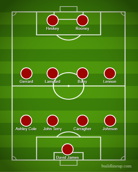 În 2010 a revenit în poartă David James, care avea 39 de ani şi juca la Portsmouth. Atât de rău au stat englezii la capitolul ăla. Au continuat încercările de a-i juca pe Lampard şi Gerrard în aceeaşi echipă, cormoranul fiind trecut în bandă în câteva meciuri, unde se potrivea ca nuca în perete. Au reuşit un egal cu USA şi un 0-0 cu Algeria, aşa că s-au calificat de pe locul 2 în grupă (după USA). Aşa că i-au rezolvat nemţii din optimi.