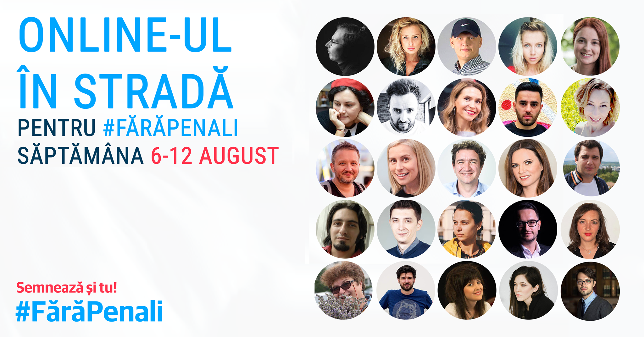 Săptămâna aceasta o serie de oameni cunoscuţi în mediul online vor ieşi în stradă pentru a strânge semnături în cadrul campaniei #fărăpenali.
