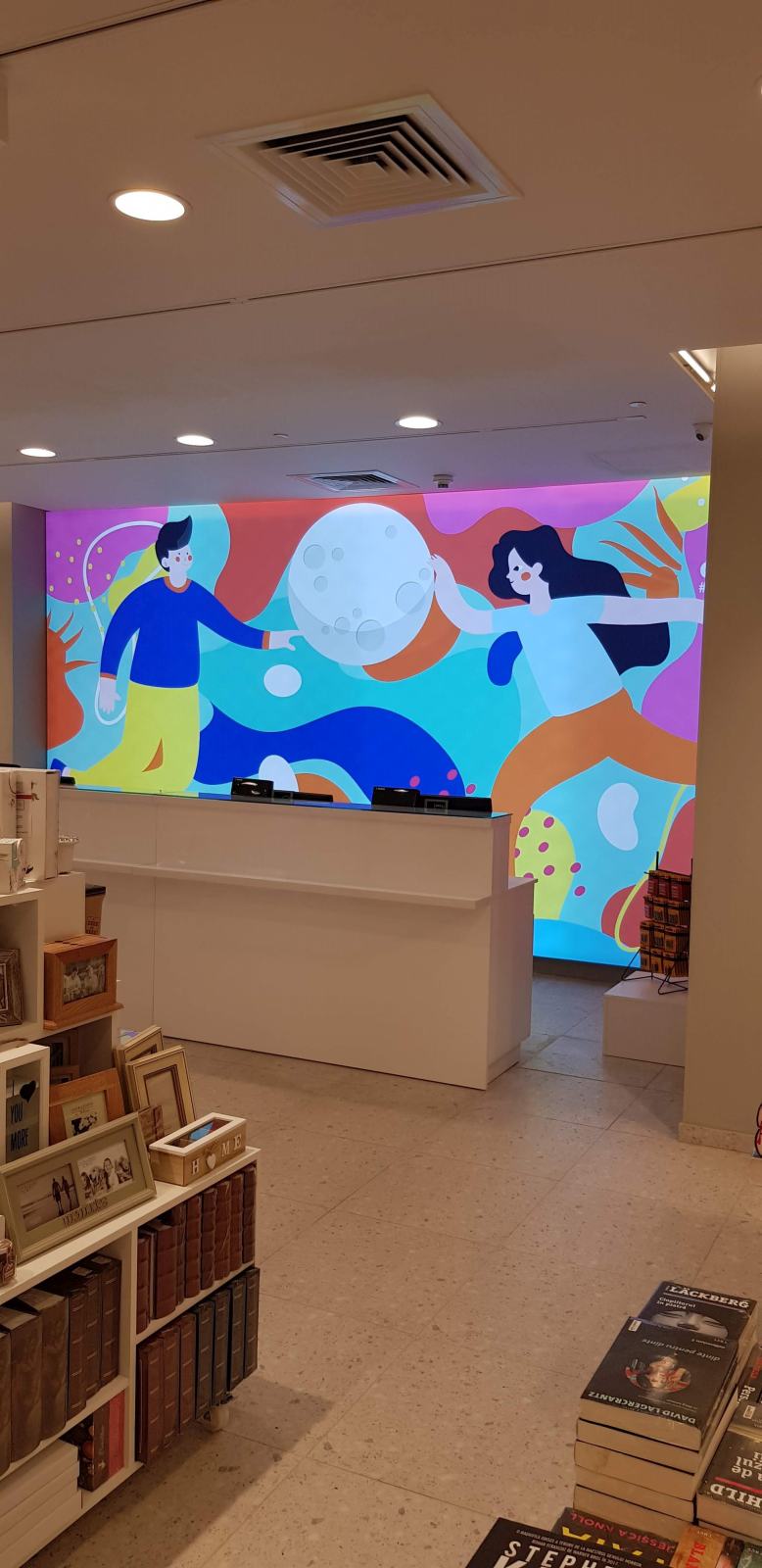 Chiar şi aşa, investiţia e una super curajoasă, vorbim de un spaţiu de 2500 de metri pătraţi pe care trebuie să-i umpli cu ceva. În comparaţie, Cărtureşti Carusel are doar 1000 de metri pătraţi, pare foarte mare pentru că sunt multe etaje, însă e şi acel spaţiu central gol.