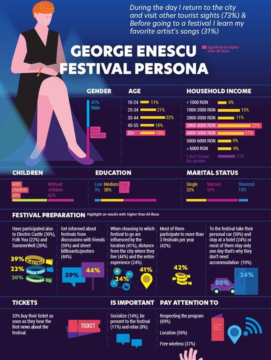- 39% din cei care merg la Enescu au fost şi la Electric Castle – asta pentru că avem un număr mic de iubitori de muzică clasică şi un număr mai mare de oameni care trebuie să bifeze. Să arate pe social media că sunt culţi, că fac parte dintr-o elită
