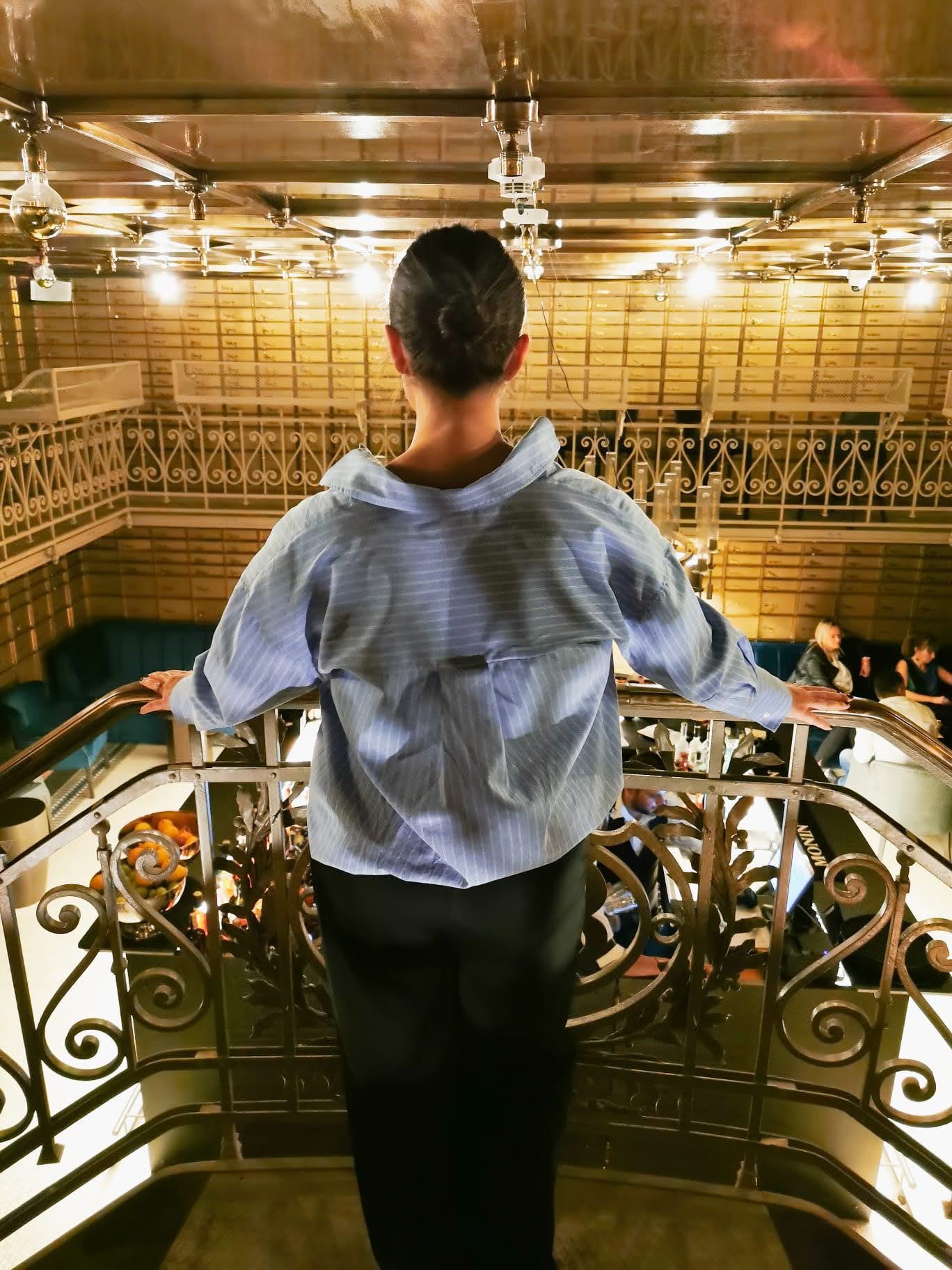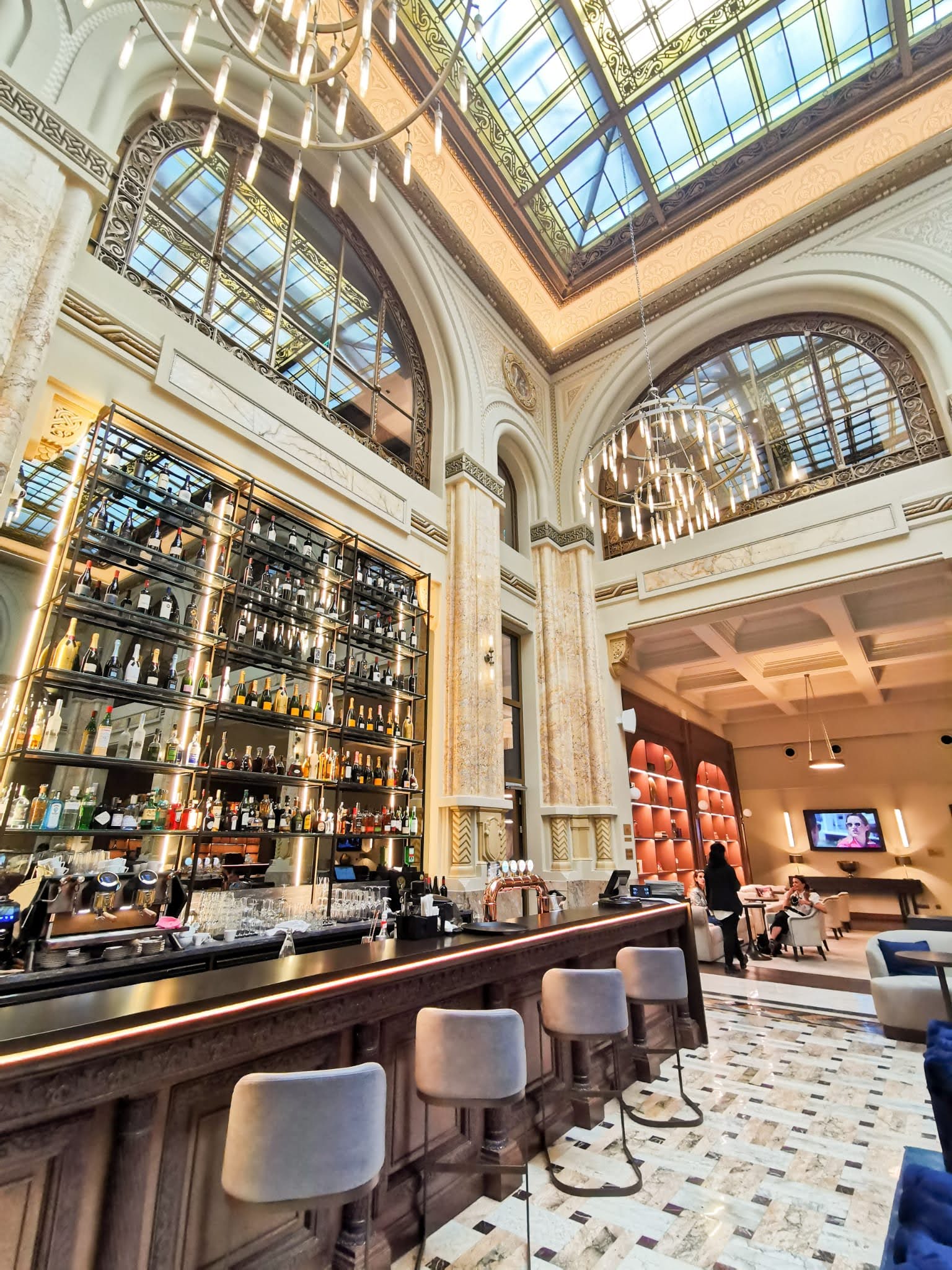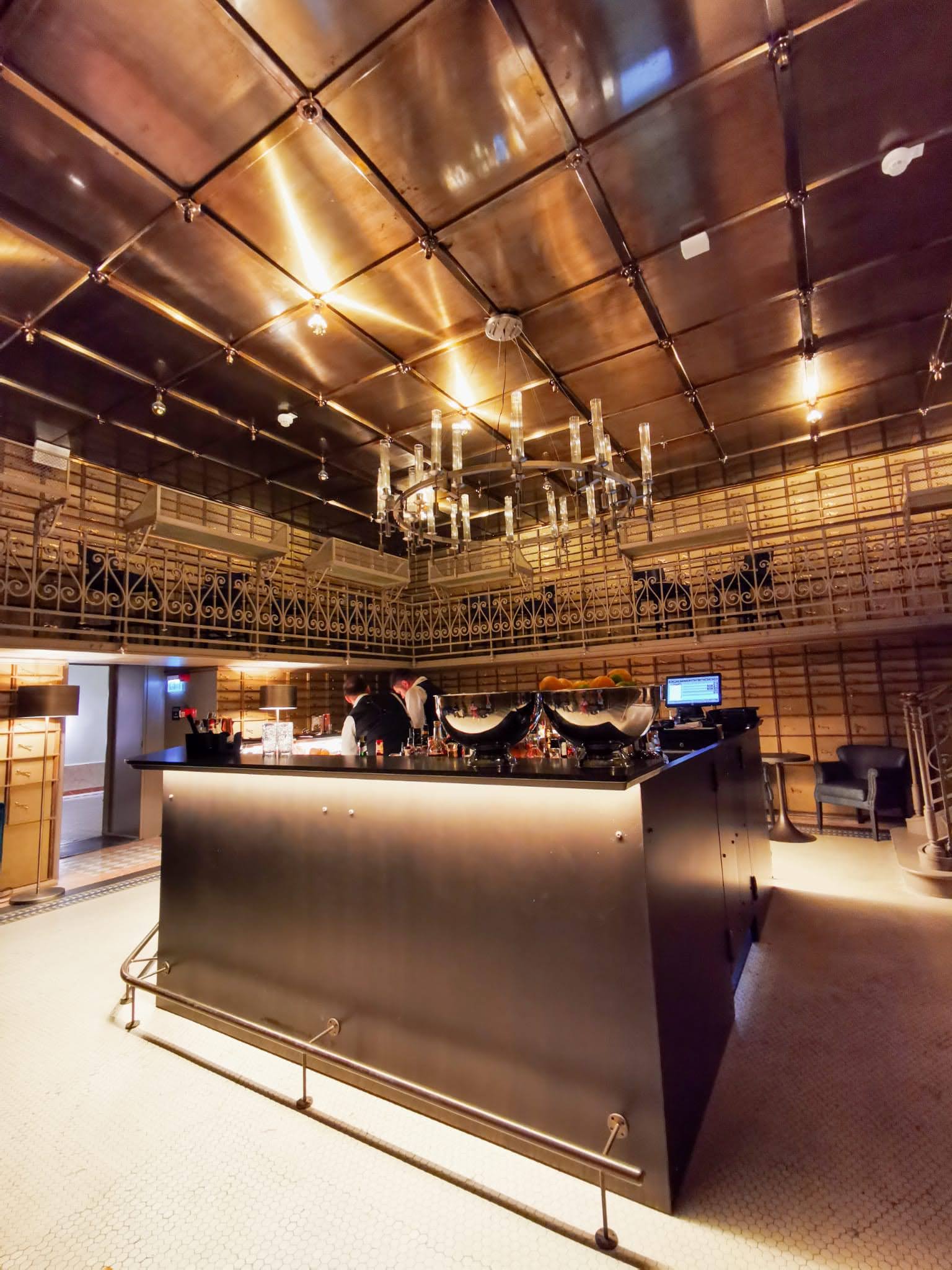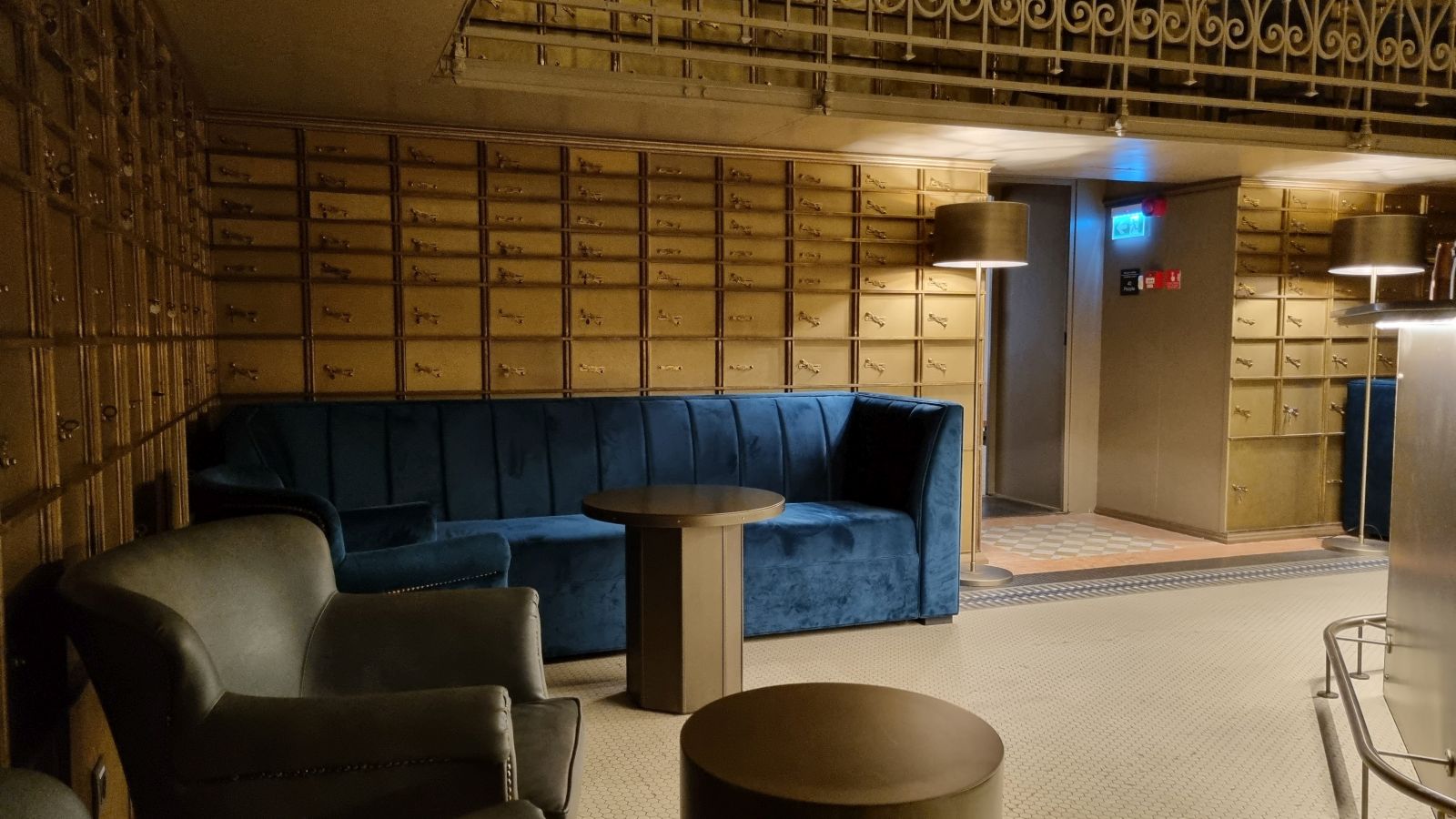 După masă am coborât la bar, ca să ne bucurăm și de una dintre piesele de rezistență ale hotelului. Seiful în care erau ținute casetele de valori ale băncii a fost transformat în bar. Deja s-a plimbat multă lume pe acolo și o să devină loc de pelerinaj după ce se mai termină cu pandemia.