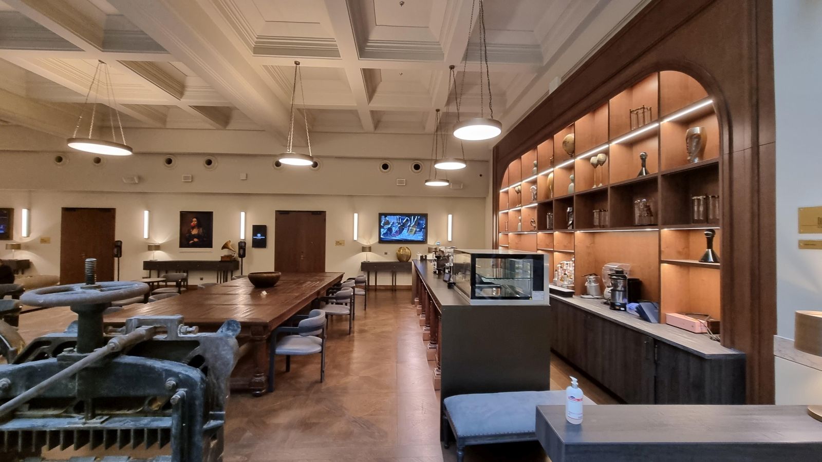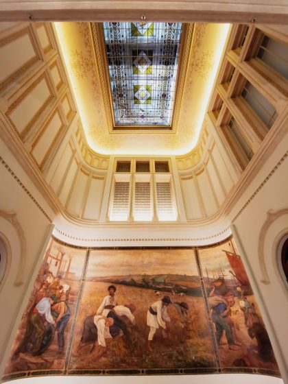 S-au păstrat mult elemente originale, în special holul principal păstrează scara de marmură de acum 100 de ani.