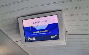 Pe tot parcursul drumului ai acces la Wi-Fi (care nu merge în tunel, desigur) şi sunt nişte ecrane pe care primeşti tot felul de informaţii despre traseu.