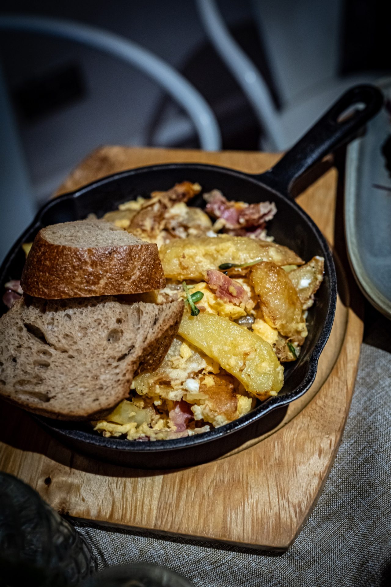 La meniul de brunch au ouă cu cartofi prăjiţi la 44 de lei, omletă la 28 de lei, ouă norvegiene la 47 de lei, plus niște platouri de brunch la 56 de lei. Şi pancakes la 34 de lei.