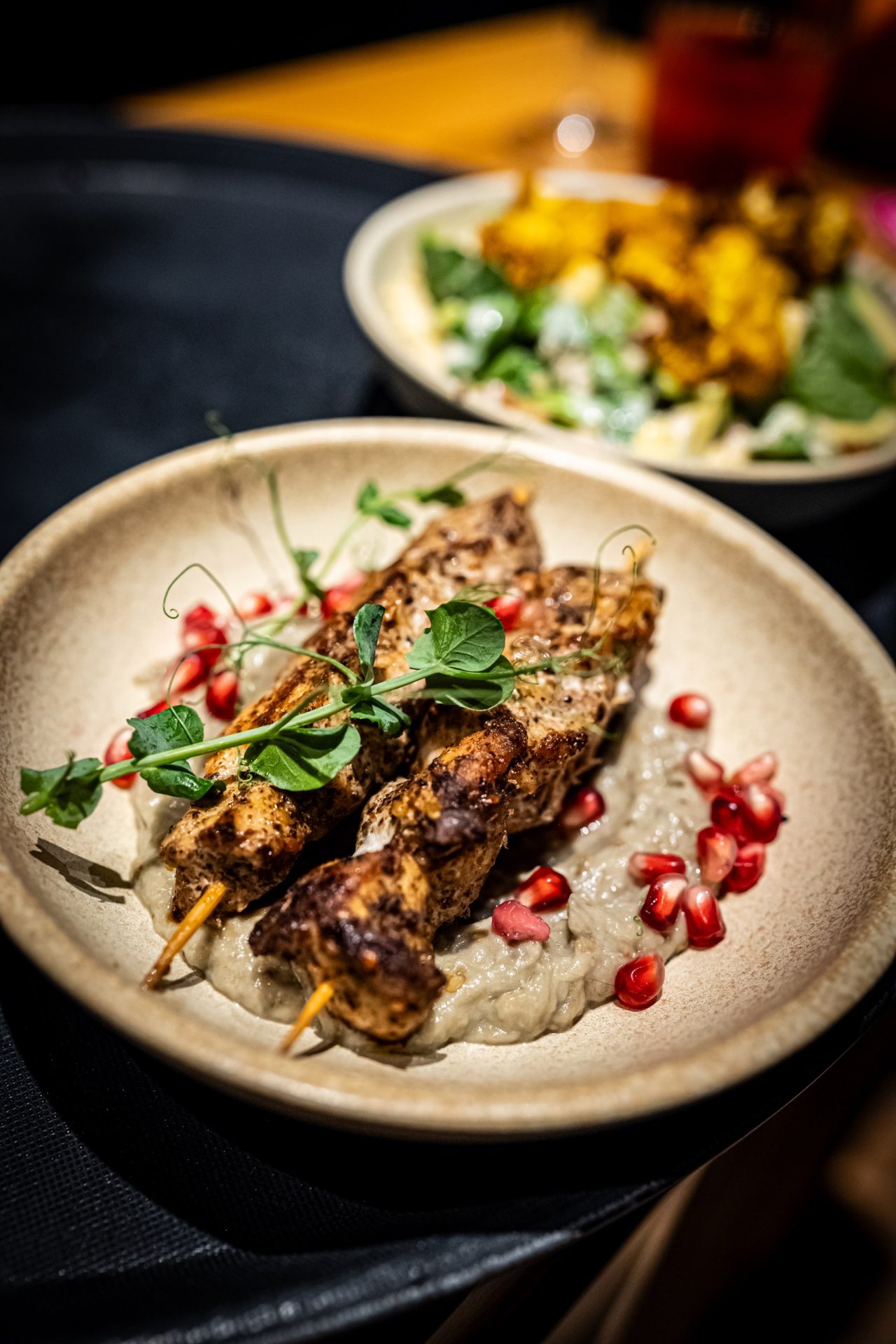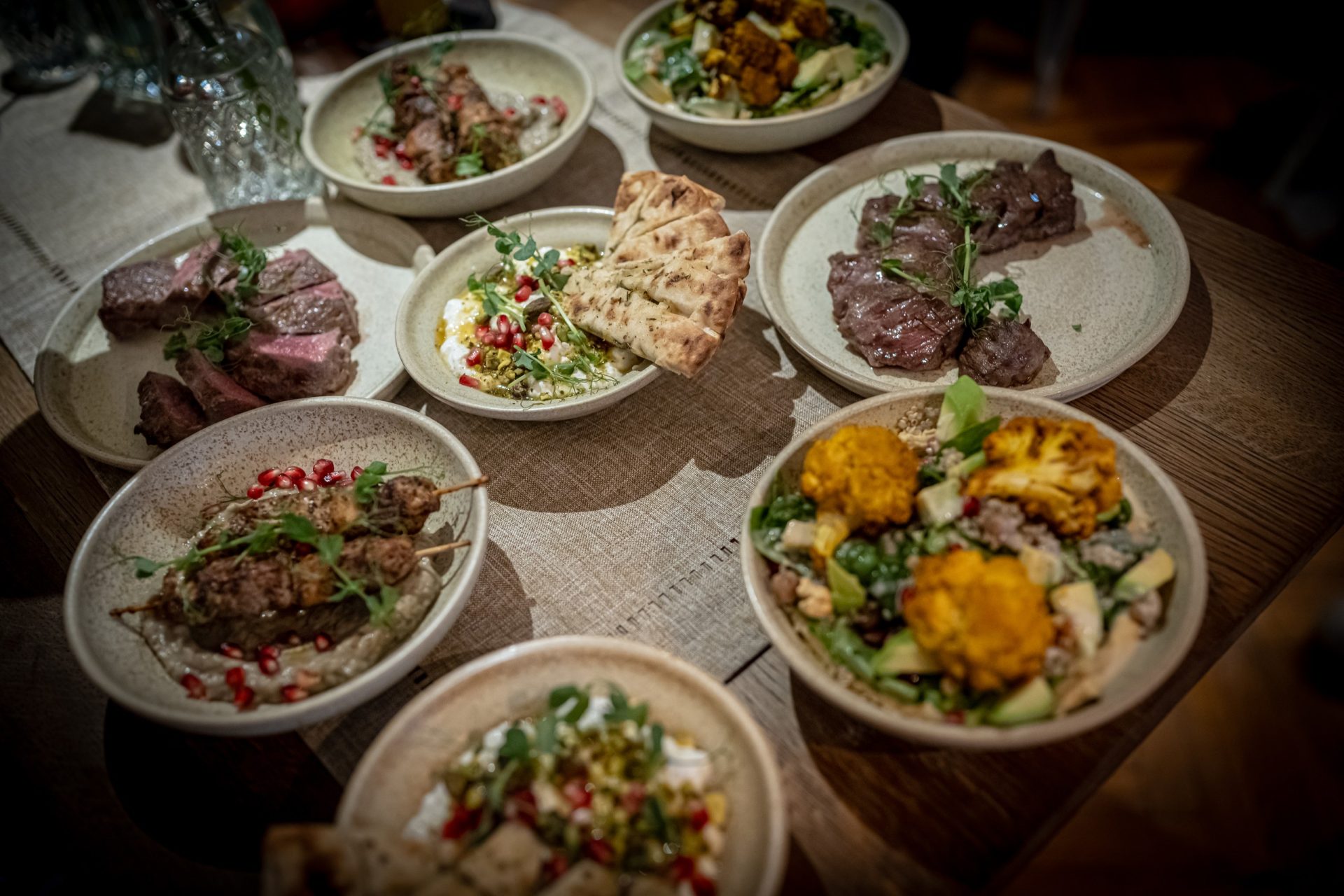 Frigărui de pui cu baba ganoush 30 de lei. Tocăniţă mediteraneană cu fructe de mare 32 de lei. Cartofi zdrobiţi la 27 de lei. Ok, sunt porţii de 200 de grame, dar e excelent să am opţiunea asta în loc să fiu nevoit să dau 60 de lei pe o porţie full. Că n-o să-i dau dacă nu mi-e foame, iau o limonadă şi gata.