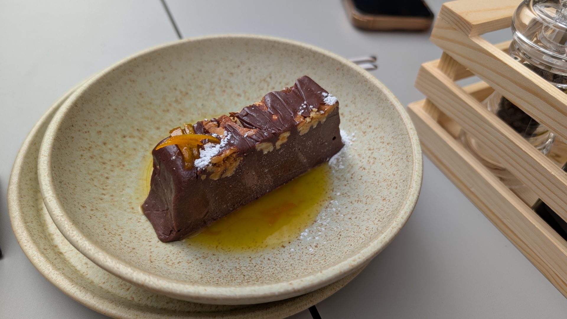 La Mira am testat un rosti de cartof dulce cu provolone și tzatziki și am primit din partea casei o ciocolată de casă cu dulceață de portocale care este fantastică.