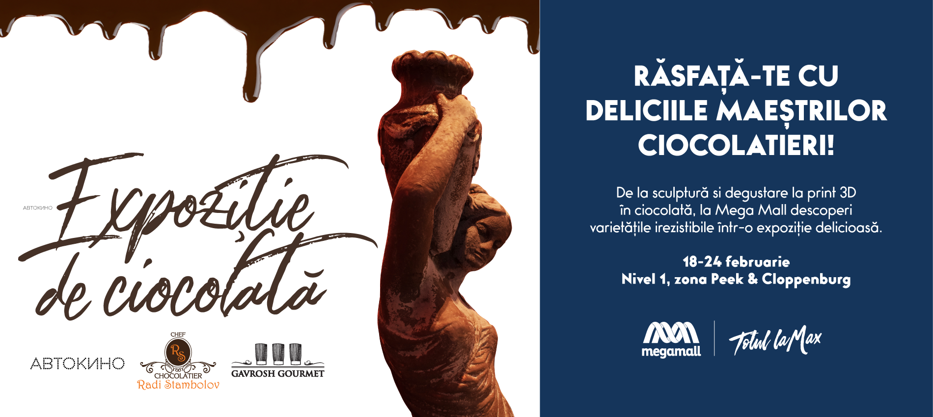 Nu ştiu dacă aţi observat, dar în ultimii ani mallurile au început să aducă tot felul de expoziţii şi alte atracţii inedite. De la muzeul lego până la escape room-ul Game of Thrones. Cei de la Mega Mall au până pe 24 februarie o expoziţie de ciocolată, cu sculpturi de 1,6 metri şi 130 de kilograme.