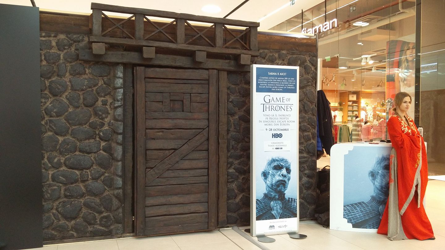 Winter is here! Momentan a venit la Mega Mall, în Bucureşti. Ieri s-a deschis primul escape room mobil din Europa. E creat de HBO şi găzduit de Mega Mall şi are ca tematică Game of Thrones. Am fost parte din a doua echipă care a intrat în el şi la ora la care am plecat de-acolo deţineam recordul de timp. 17 minute ne-a luat să ieşim din acest escape room, care a fost construit de o echipă din România specializată pe aşa ceva. Timpul limită e de 40 de minute, iar acţiunea se petrece la Rondul de noapte. Cei care reuşesc să dezlege toate misterele scapă de regele nopţii, ceilalţi devin whitewalkers. Sau pleacă cu ruşinea, de fapt. Era puţin dubios să avem un mall plin de zombies după câteva săptămâni.