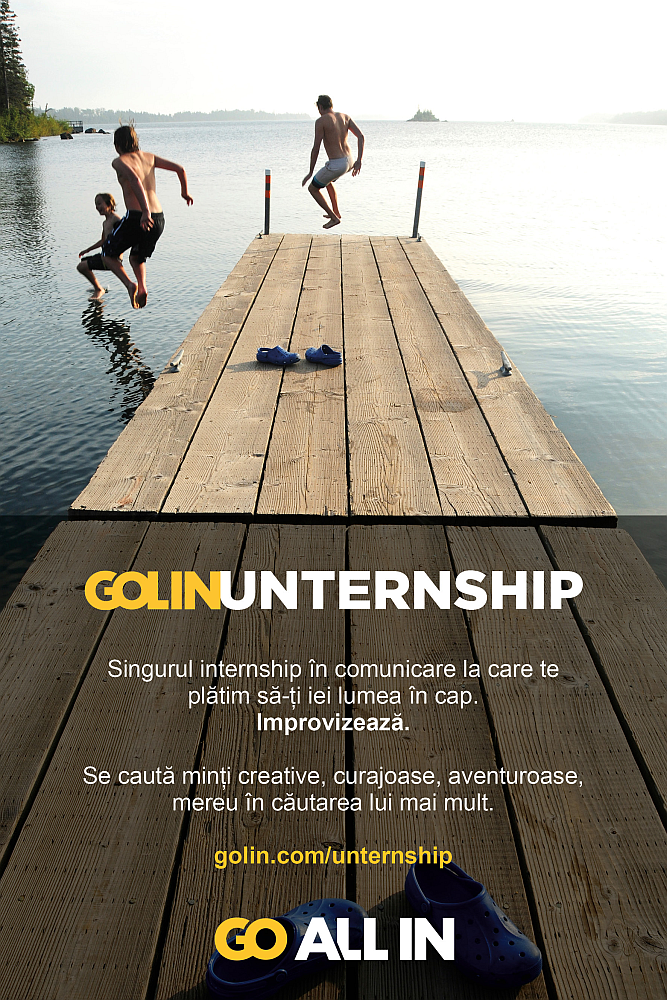 România este a 3-a ţară din lume care introduce acest Unternship în reţeaua Golin, după SUA şi Marea Britanie. Cei mai buni 5 candidaţi vor fi anunţaţi pe 14 august, vor trece printr-o altă serie de interviuri şi probe practice, urmând ca în perioada 1 octombrie – 31 decembrie cel mai bun să intre în program.